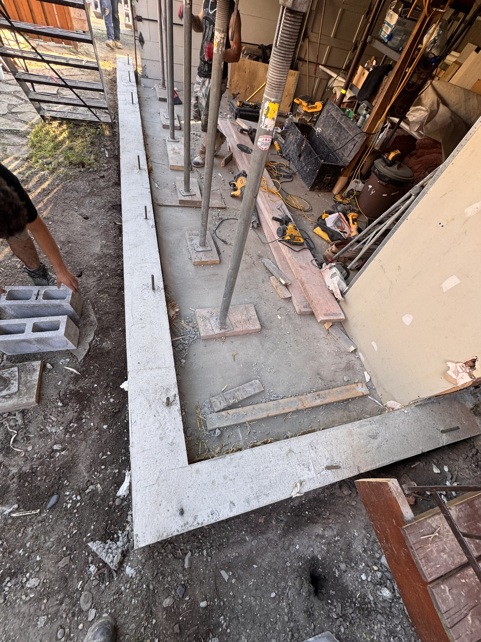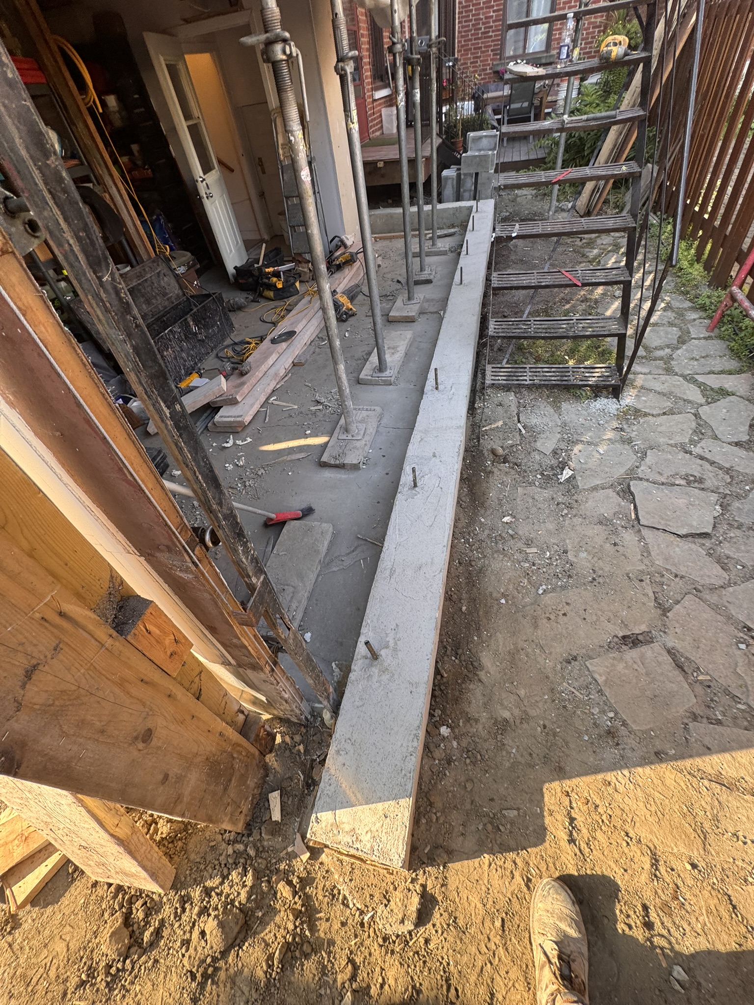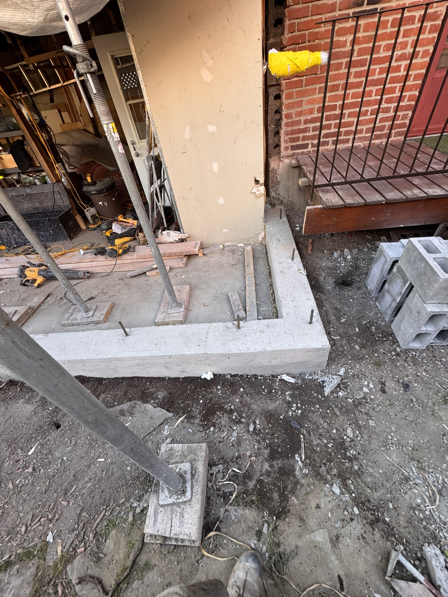 - rehaussé les semelles et ajout de sonotube afin de corriger les niveaux et de préparer l’élévation du nouveau mur ;