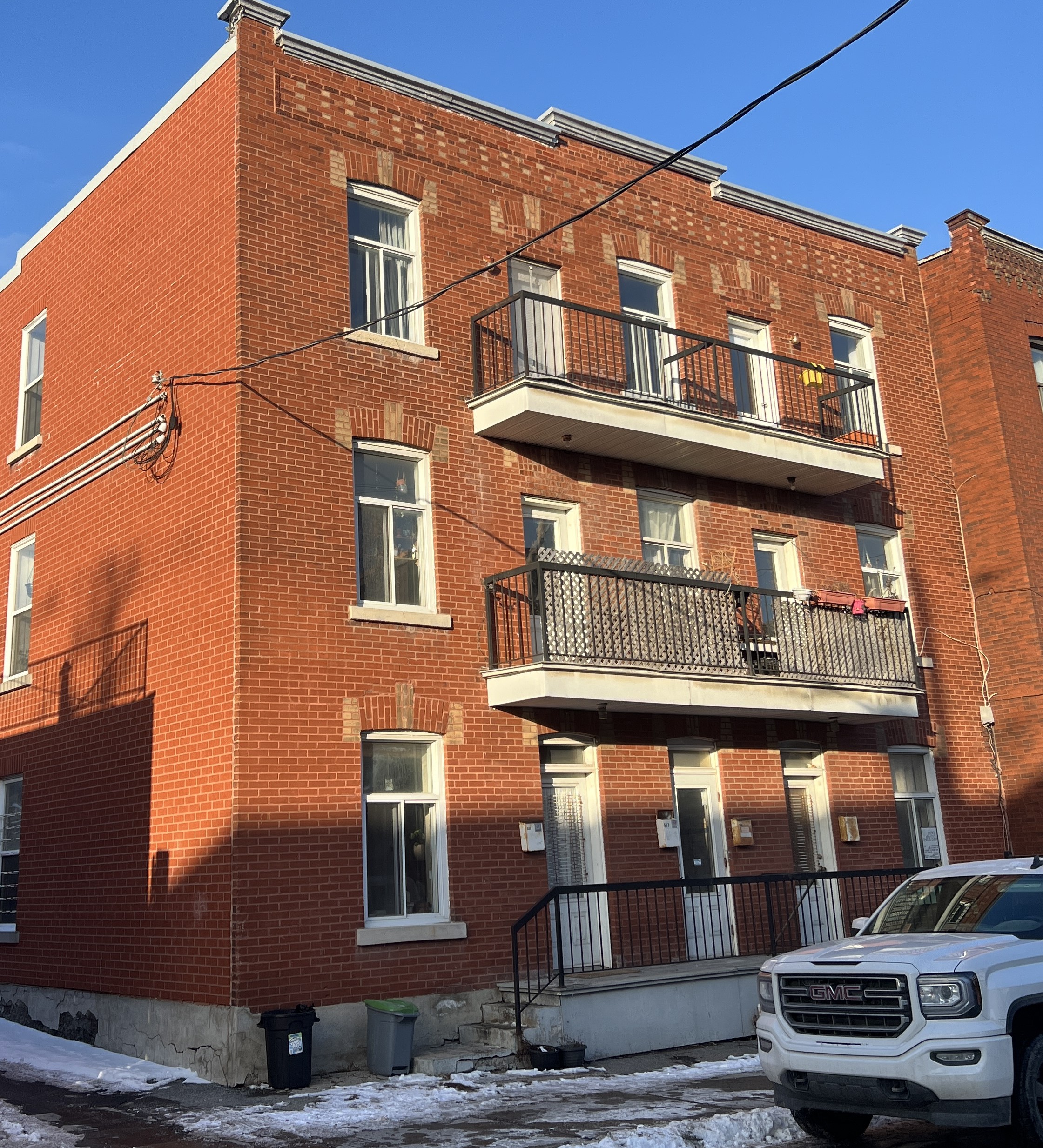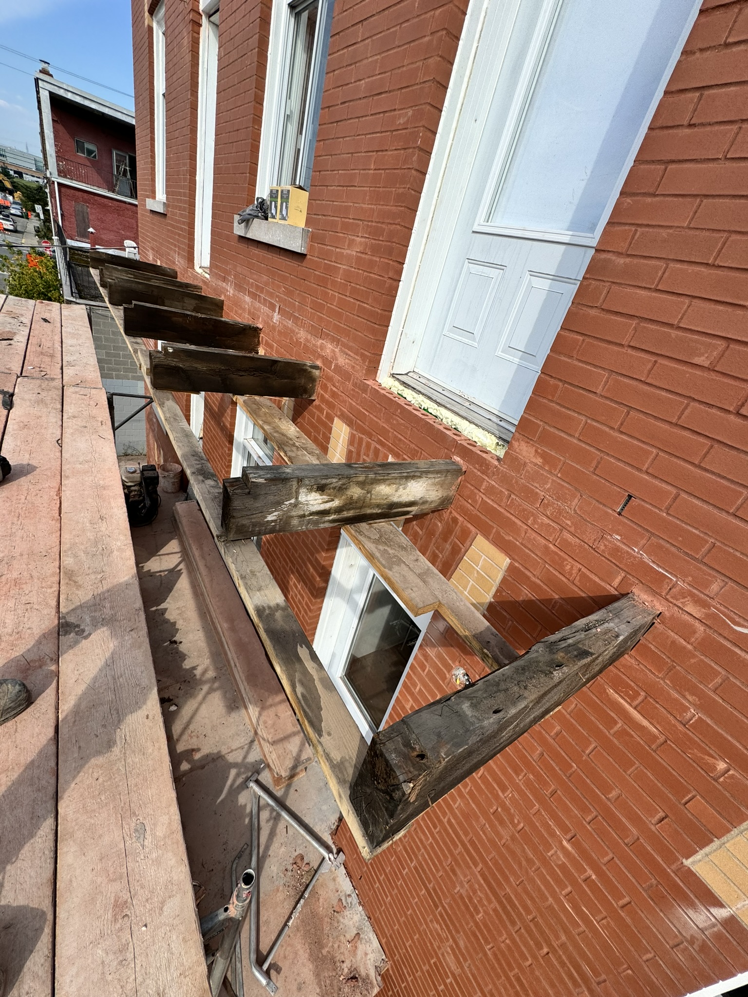 En plus de la maçonnerie, nous avons également démoli les anciens balcons afin de corriger les défauts structuraux et fonctionnels. Les pentes ont été renivelées pour assurer un drainage optimal et prévenir l’accumulation d’eau, contribuant ainsi à la longévité de l’ensemble. Nous avons ensuite réinstallé les soffits et fascias, en harmonie avec l’esthétique d’origine, pour une finition propre et conforme aux standards patrimoniaux.